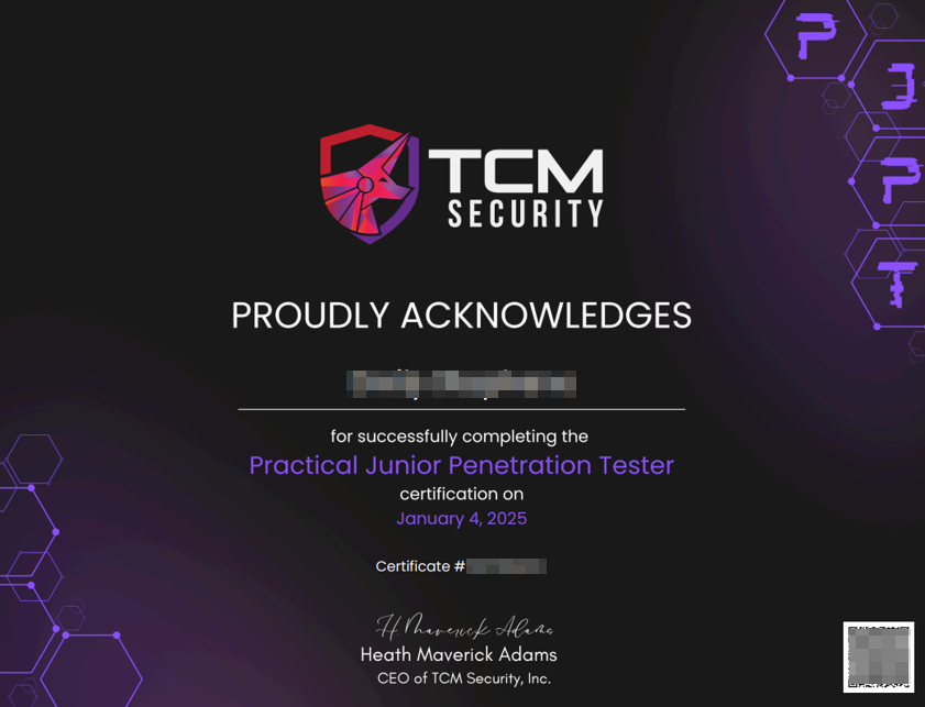 I purchased the Practical Network Penetration Tester (PNPT) exam, which is an intermediate level hacking certification. That will be my next challenge. I’ll keep you updated. Wish me luck!